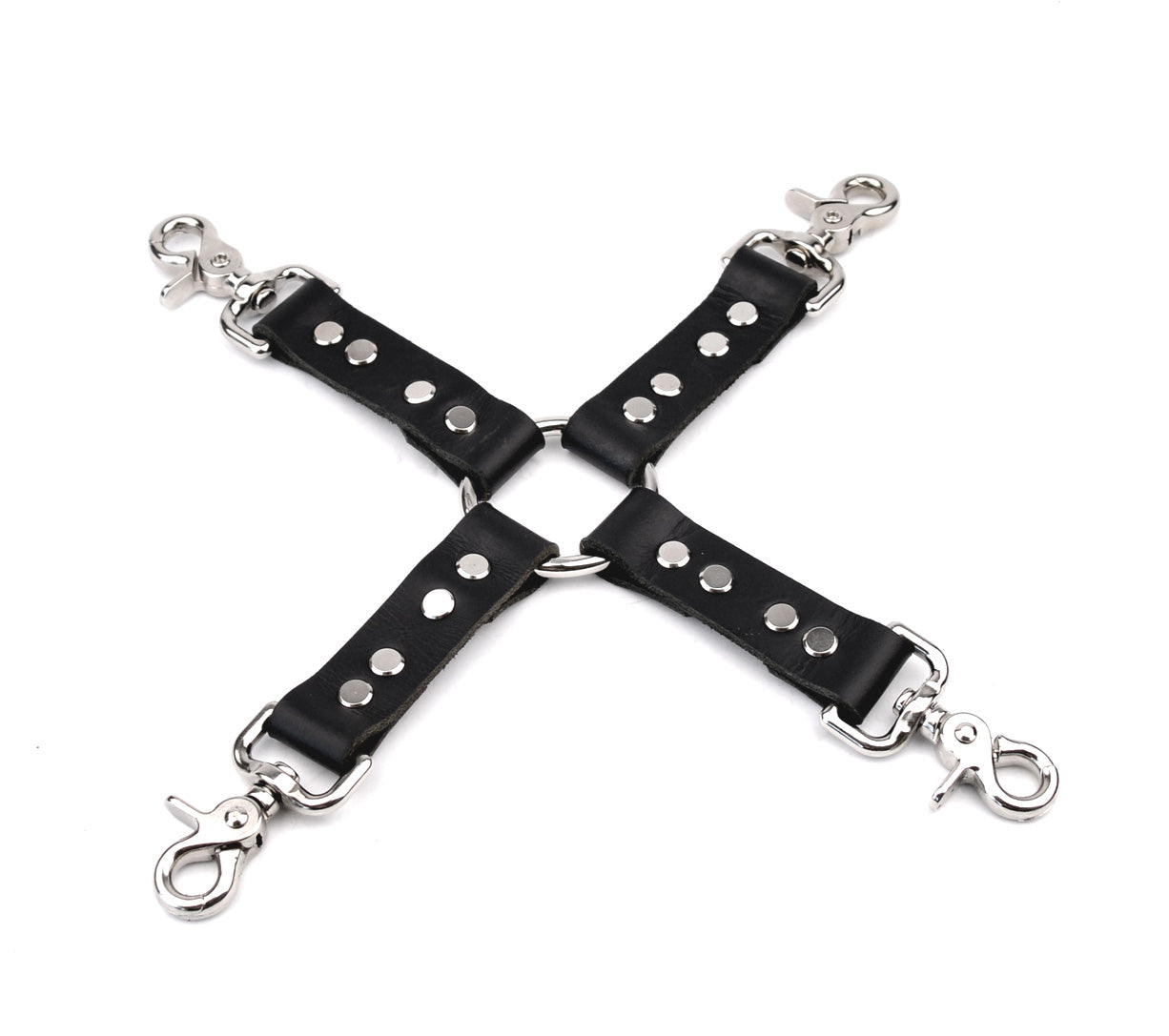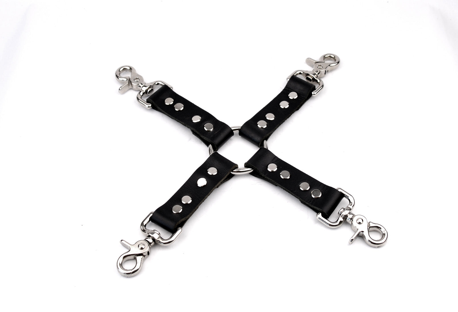 Need to place your sub in a hog tie? This cross connector is exactly what you need.This handcrafted heavy duty connector is made from thick leather appointed with top quality hardware including 4 X lobster hooks.Specifications:
