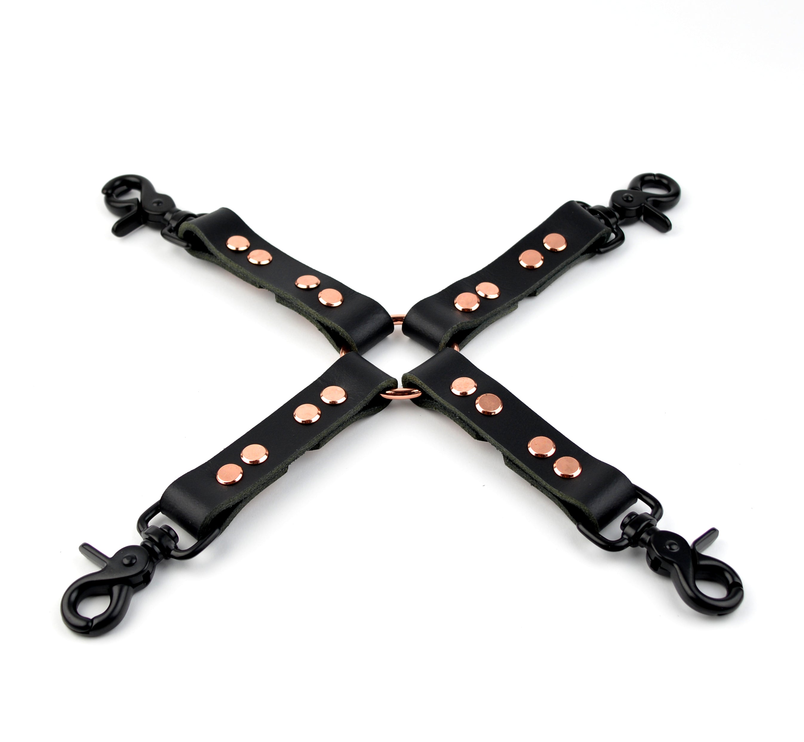 Heavy Duty Leather Cross Hog Tie Connector - Black & Rose Gold