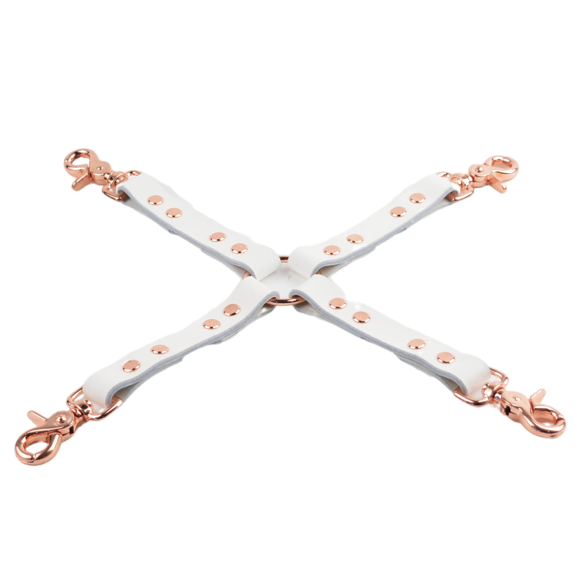 Heavy Duty Leather Cross Hog Tie Connector - White Leather & Rose Gold Hardware