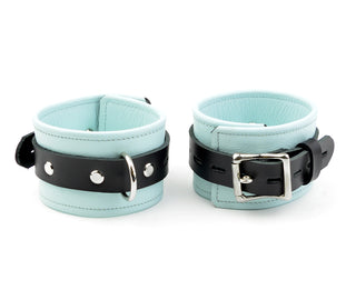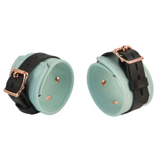 Premium Leather Ankle Cuffs - Aqua Adore Blue & Rose Gold