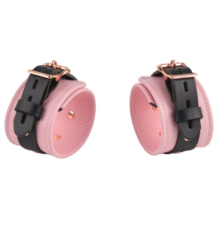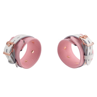 Premium Leather Ankle Cuffs - Blush Pink & White Leather With Rose Gold Hardware