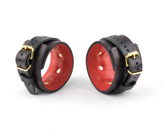 Premium Leather Ankle Cuffs - Black and Americana Red With Gold Hardware