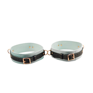 Premium Restraint Set Beautiful Triple Layer Leather Wrist-Ankle Cuffs And Collar - Aqua Adore Blue & Rose Gold