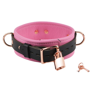 Princess Pink & Rose Gold Premium Three Ring Leather Bondage Collar