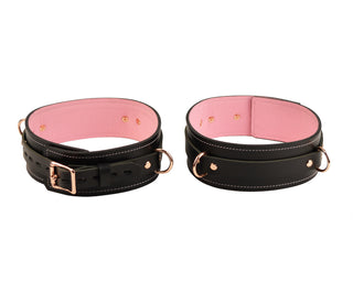 Premium Thigh Cuffs - Black And Blush Pink With Rose Gold Hardware