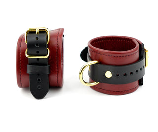 Premium Restraint Set Wrist-Ankle Cuffs And Collar + Cross Connector - Scarlet Red and Gold