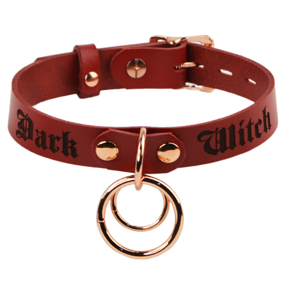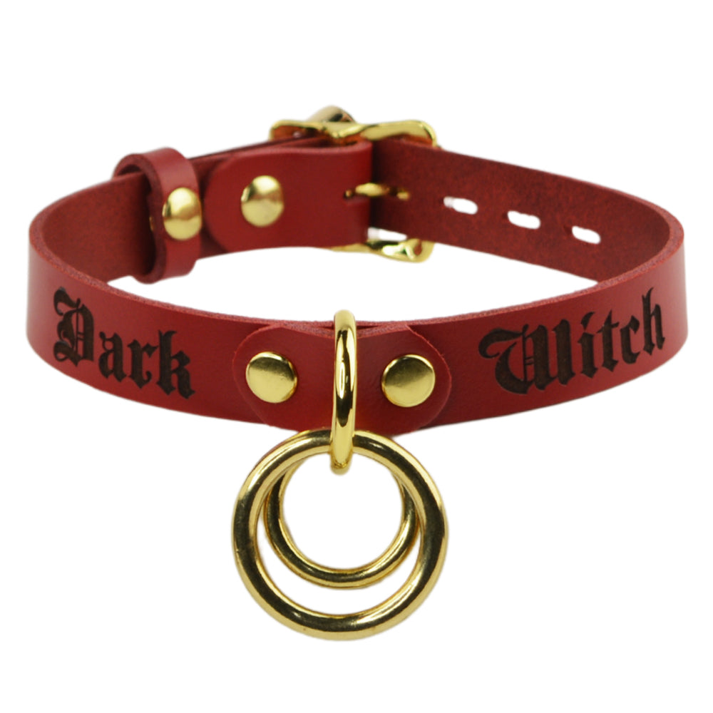 Custom Engraved Leather Dual Ring Collar Americana Red Leather with Gold Rose Gold or Silver Hardware