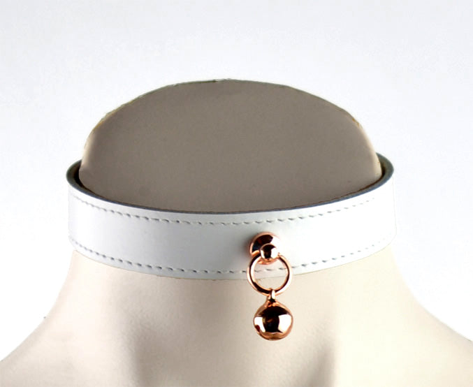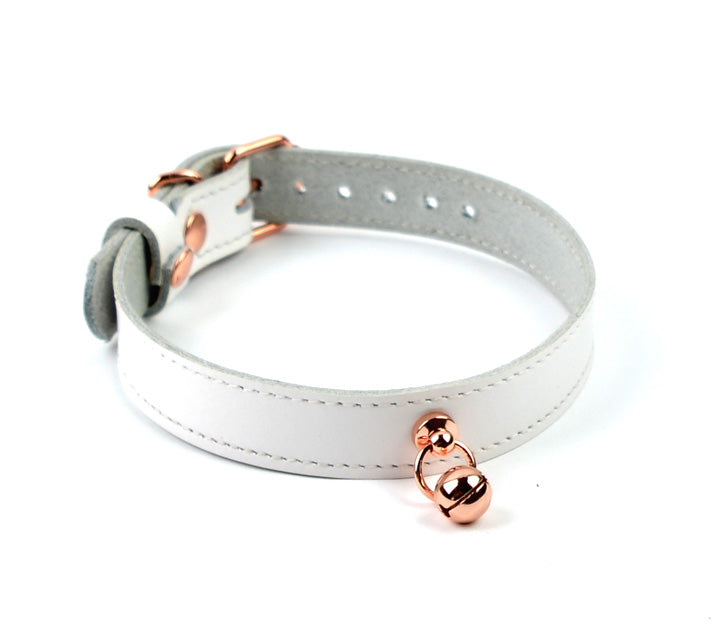 White Leather Aurum Collar with Rose Gold Kitten Bell