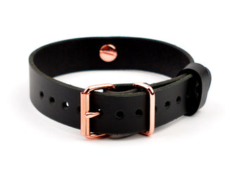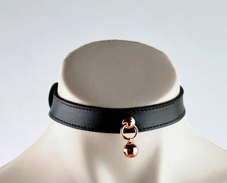 Black Leather Aurum Collar with Custom Engraved Rose Gold Kitten Pendant – 'Kitten'