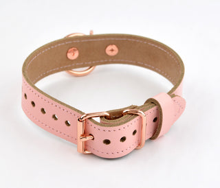 Blush Pink Engraved Leather Martingale Day Collar - Rose Gold Round Pendant