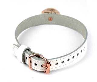White Leather Collar with Custom Engraved Rose Gold Love Heart Pendant – 'I Own You'