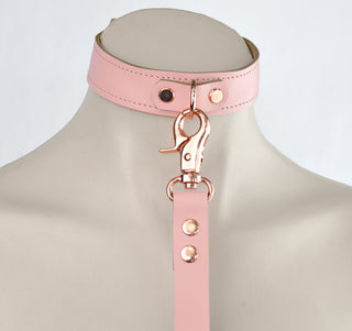 Blush Pink Leather Aurum Collar with Rose Gold D-Ring & Leash