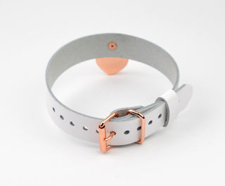 Blush Pink Leather Collar with Custom Engraved Love Heart Pendant – 'I Own You'