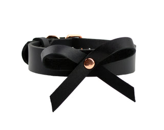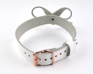 White Leather Aurum Collar With Bow & Rose Gold Kitten Bell