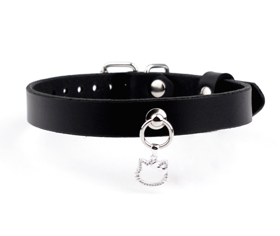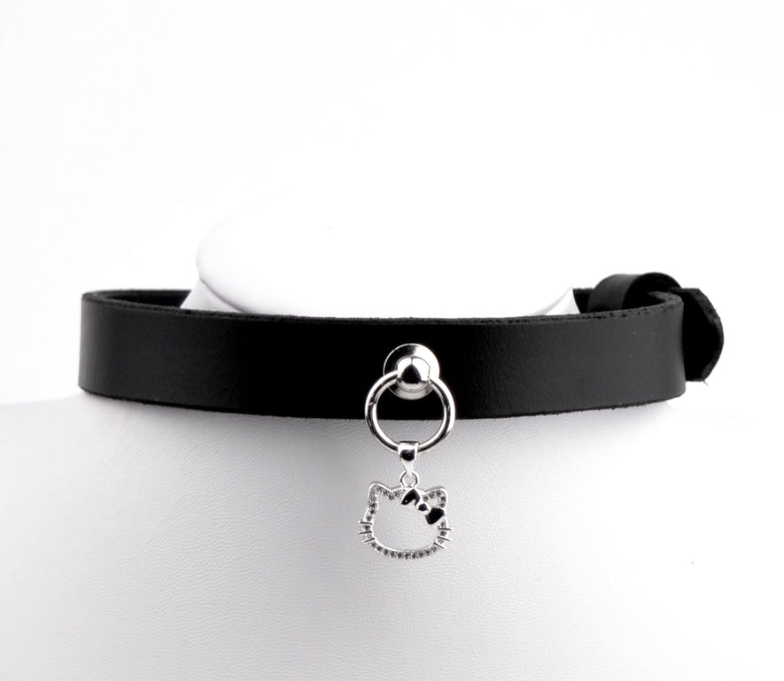 This ridiculously cute choker collar is handcrafted from soft leather and appointed with a diamante rhinestone encrusted kitty pendant.