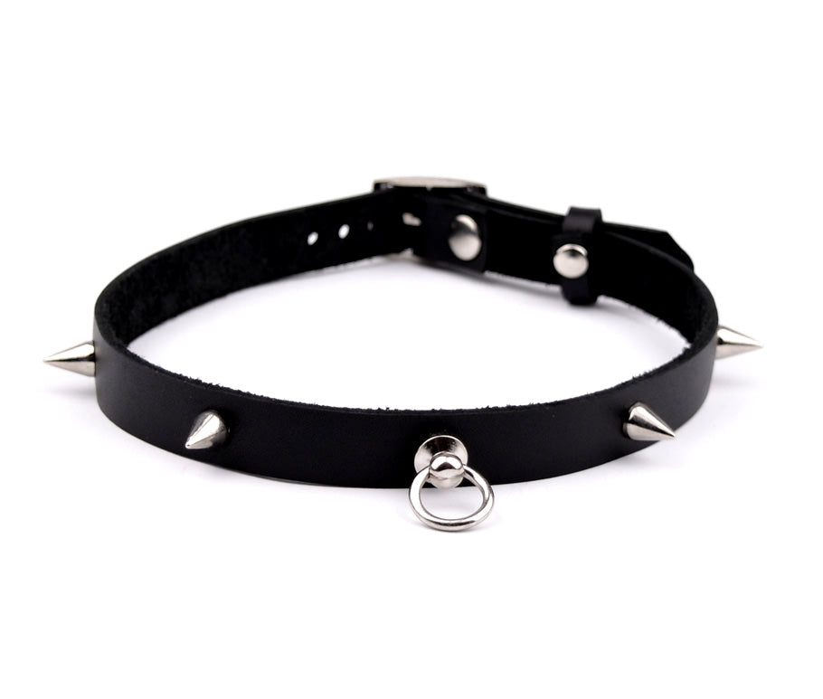 This subtle spiked collar is handcrafted from soft high quality leather and features a small ring pendant attachment. The softness and durability of this collar makes it ideal for daily wear.