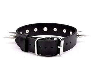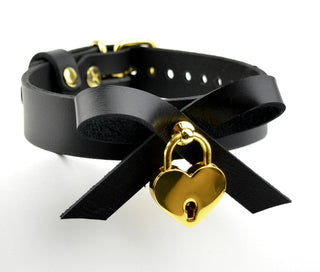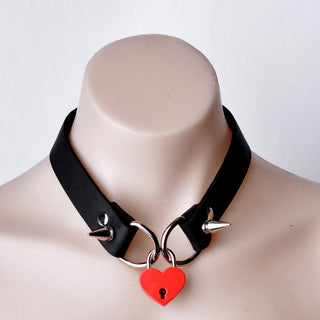 Black Leather Choker with Red Love Heart Padlock and Steel Spikes