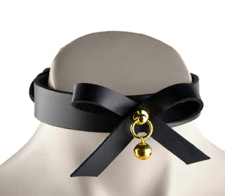 Americana Red Leather Bow Collar with Rose Gold Kitten Bell