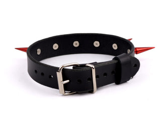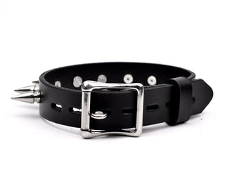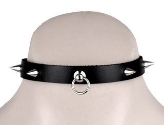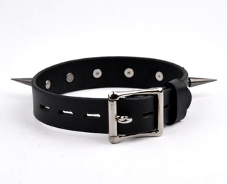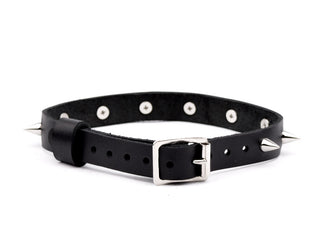 Black Leather Collar With Silver Spikes & Love Heart Lock Pendant