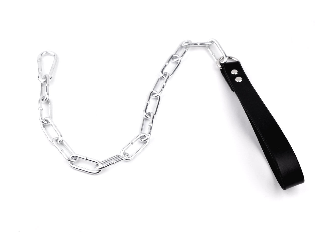 This heavy duty chain & leather leash is made from the finest of heavy duty leather with a 5mm chain and carabiner hook. The leather handle is fully bevelled for your comfort. This is a stunning leash that will be the perfect accessory to any collar.