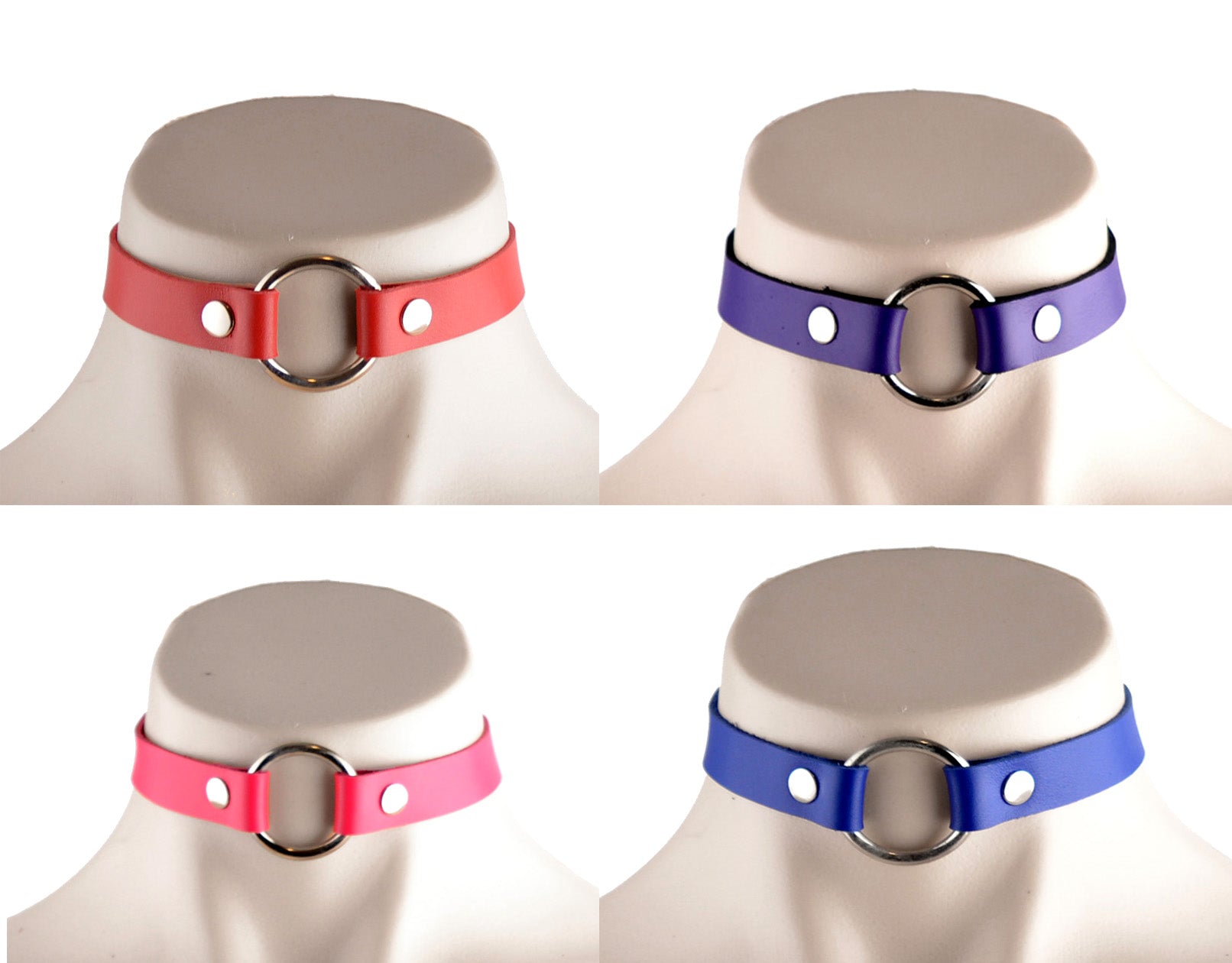 Leather O-Ring Choker – Red/Purple/Pink/Blue