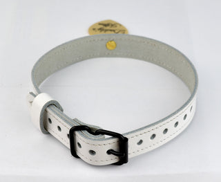 White Leather Collar with Gold Custom Engraved Love Heart Pendant