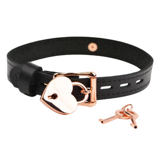 Black Leather Amare Collar with Rose Gold Love Heart Padlock Pendant