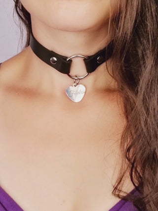 Secret Message Custom Engraved Leather Collar with Silver Love Heart Pendant