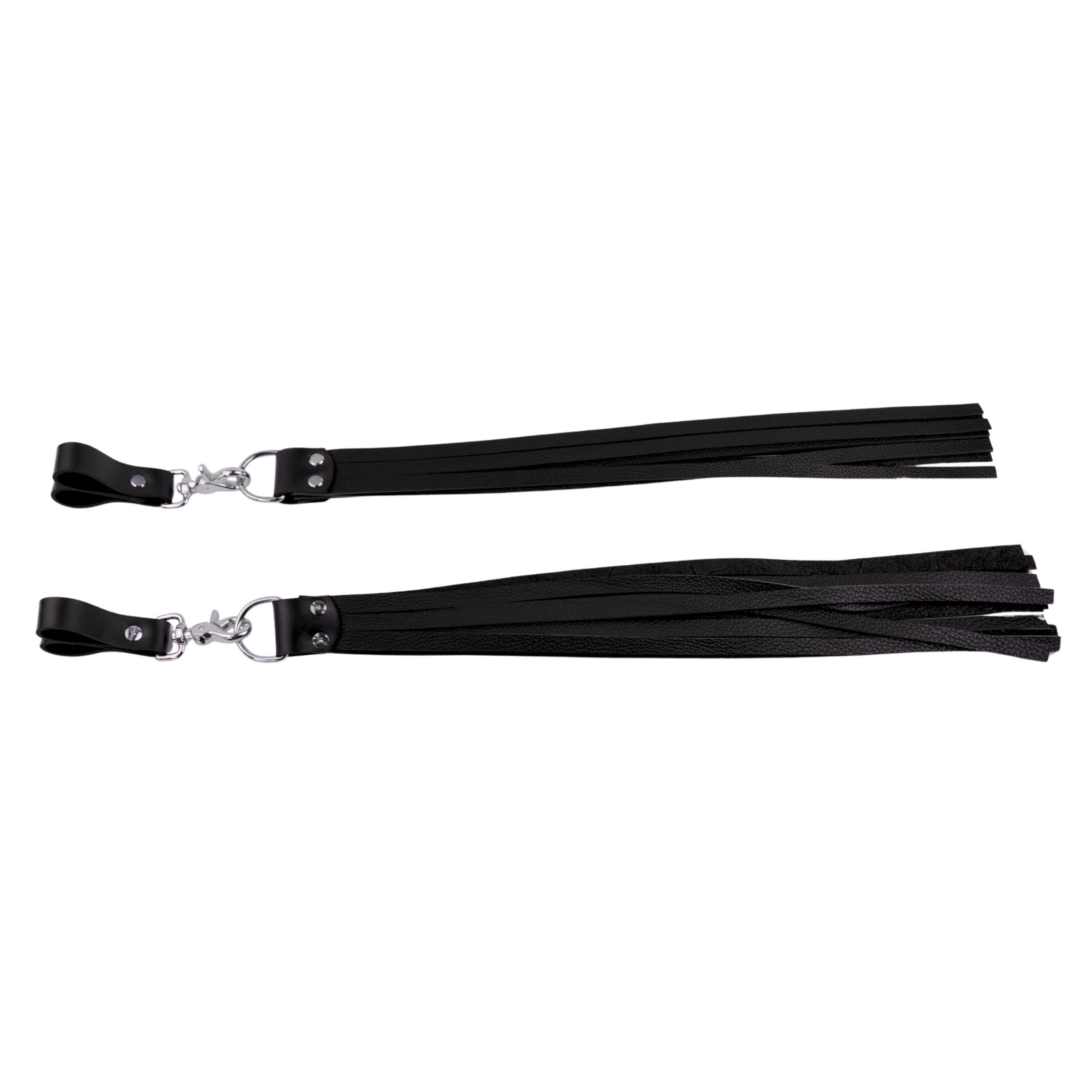 Because of their design, finger floggers can create anything from soft teasing caresses to crisp, playful sting, depending entirely on your technique. If you want more of a weighty swing, you can also easily attach the two floggers to one handle using the high quality lobster hook.