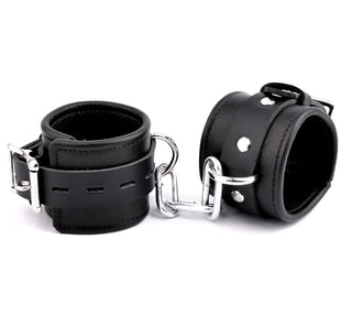 Black Leather & Steel Chains Premium Restraint Set - Wrist & Ankle Cuffs, Collar and Leash
