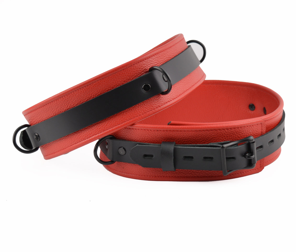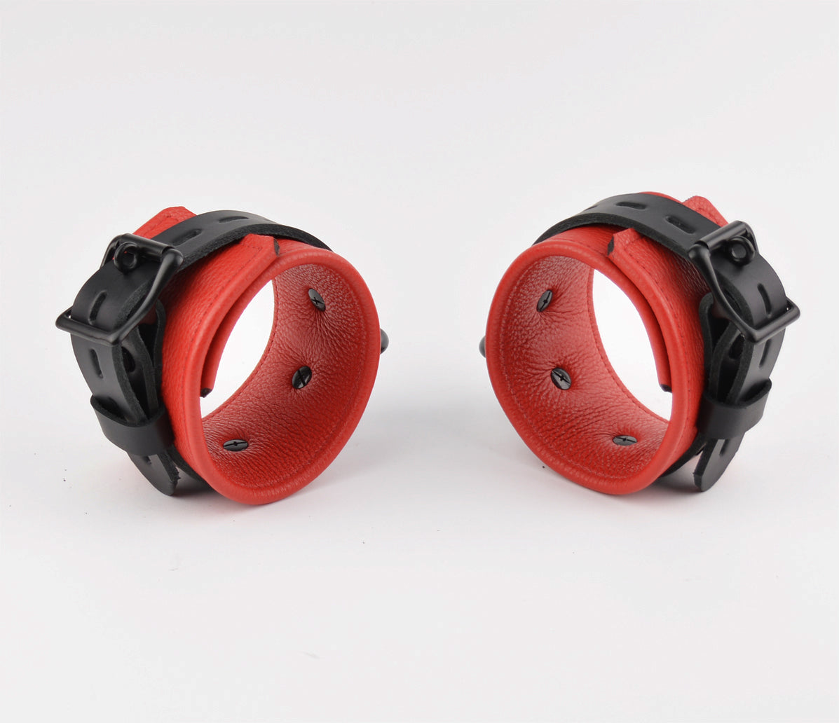 • Want something a little unique with your bondage gear? This stunning red luxury leather with black hardware restraint set is it! The quality feel of the luxury leather and eye-catching detail of the hardware will surpass all your expectations.