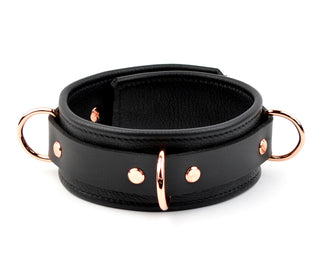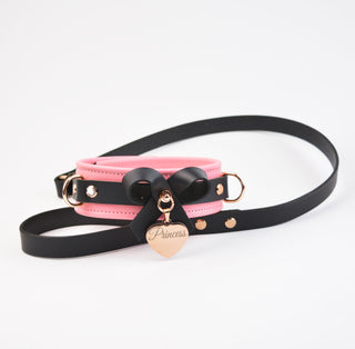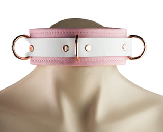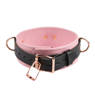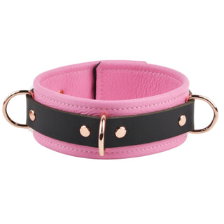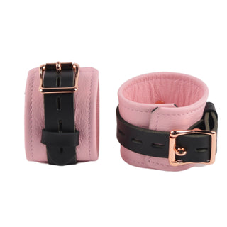 Black and Blush Pink Leather with Rose Gold Bondage Restraint Set | Collar Wrist and Ankle Cuffs, Connectors Locks