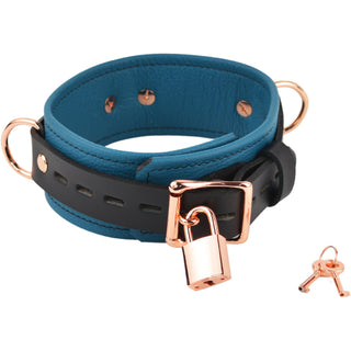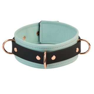 Premium Restraint Set Beautiful Triple Layer Leather Wrist-Ankle Cuffs And Collar - Aqua Adore Blue & Rose Gold
